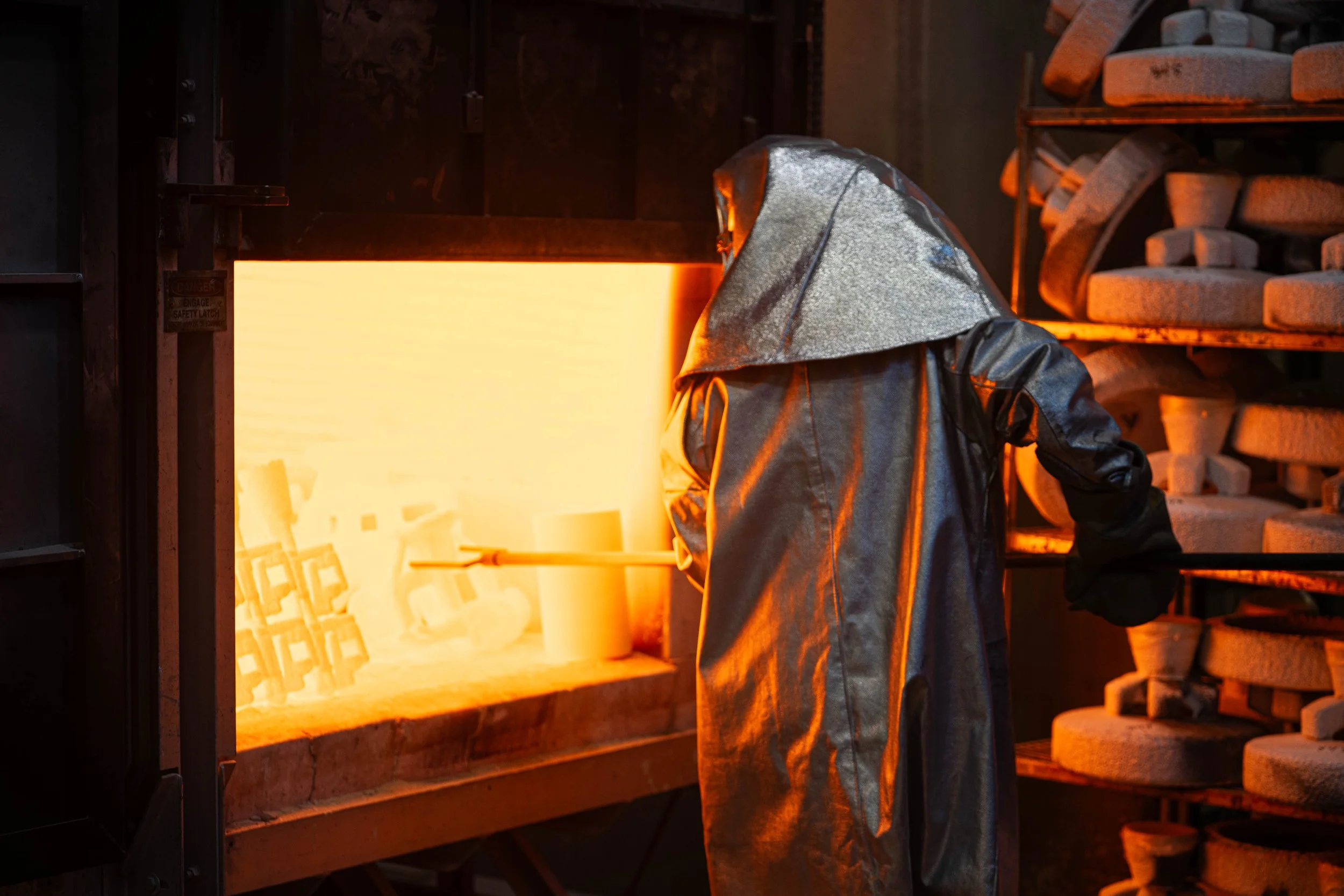 Shells are placed into furnaces where they are superheated to prevent thermal shock/failures and achieve consistent results during metal pouring. Your alloy of choice is heated in a furnace and then introduced into the shell, creating a near-net casting.